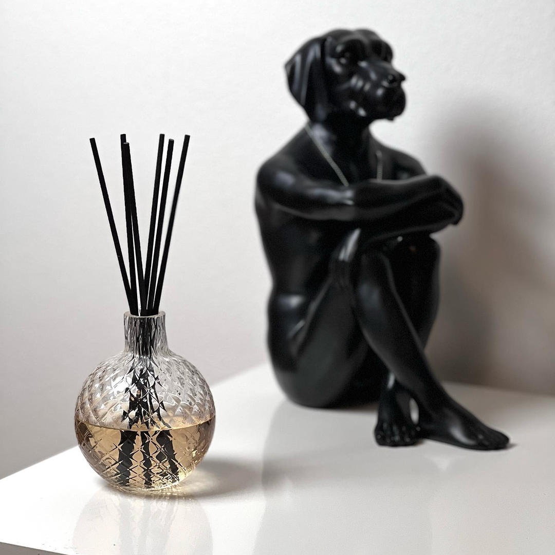 Jedinečná kompozice voňavých tyčinek v ručně foukaném skleněném aroma difuzéru vytváří v interiéru nepřehlédnutelný dekorativní prvek. Černé tyčinky umožňují vzlínání vonné náplně do prostoru. V unikátním hvězdicovém vzoru difuzéru se při dopadu slunečních paprsků rozehraje jedinečné kouzlo hry světla a stínu. Díky ručnímu foukání je každý kus originál. Po vypotřebování náplně vypláchnete nádobku teplou vodou, dolijete náhradní náplň a vložíte nové tyčinky.