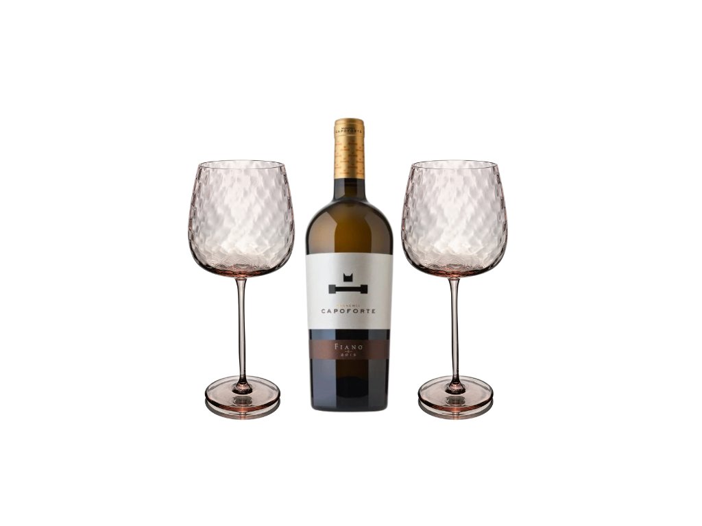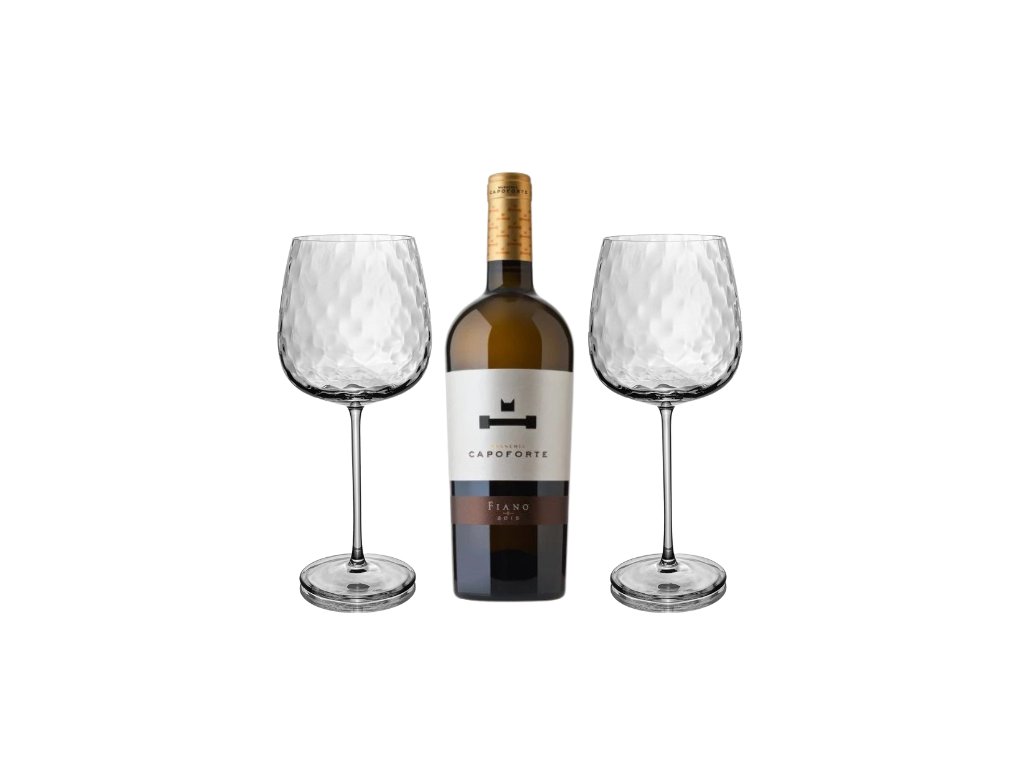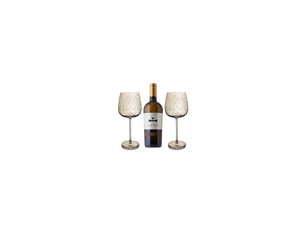 Objevte jedinečný zážitek z degustace s Dárkovým setem 2 skleniček na víno Cínie a exkluzivního italského vína CAPOFORTE FIANO, IGT. Tento set nabízí spojení tradičního českého sklářského umění a delikátního bílého vína z oblasti Apulii. Ručně foukané skleničky na víno Cínie s moderním designem a elegantní dlouhou stopkou poskytují ideální tvar pro plné rozvinutí vůně a chuti. Dopřejte si každý doušek a nechte víno zazářit v originálním skle, které je opravdovým mistrovským dílem.