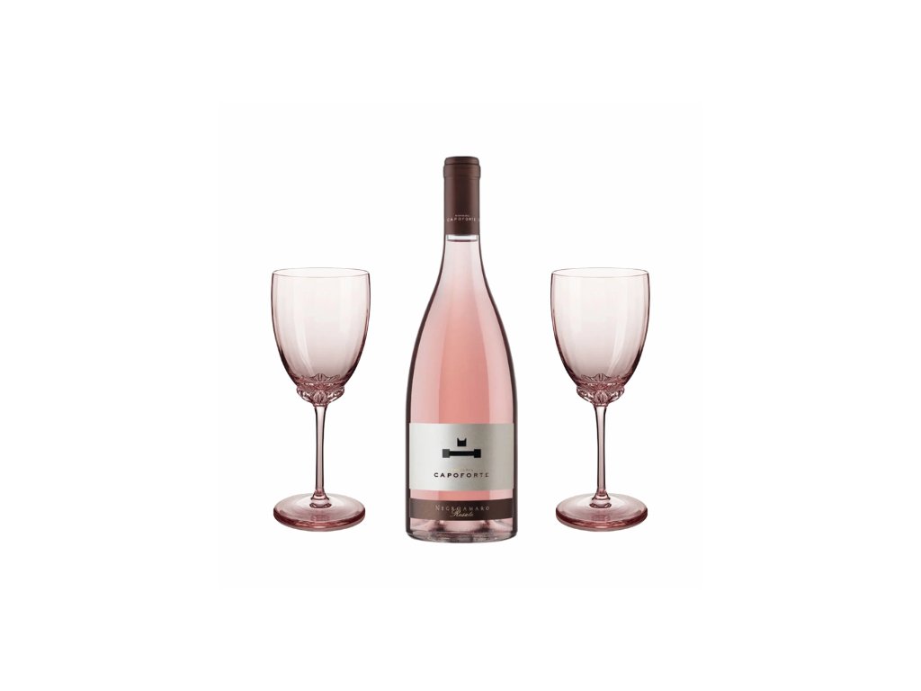 Dárkový set s 2 skleničkami na víno Sakura a lahví vína CAPOFORTE Negroamaro Rosé představuje výjimečný dárek, který zaujme nejen milovníky kvalitního vína, ale i ty, kteří ocení estetiku ručně foukaného skla. Elegantní sklenice Sakuracharakteristické siluety s jemnými liniemi převládajícími nad oblými křivkami dodají jakkoli prostřenému stolu jedinečný nádech elegance a vytříbeného stylu.