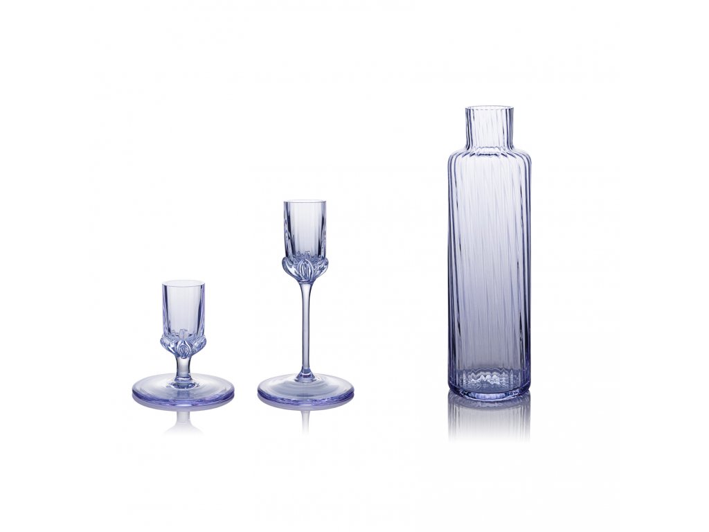 Dárkový balíček skloglass s ručně foukanou dózičkou s víčkem, vázičkou, svícny 7cm a 13cm Sakura a dvě bílé svícky. Unikátní Sakura design je výjimečný svým hranováním z vnější strany výrobku. Takzvaný optiš si hraje s lomem světla. Barva alexandrit díky speciální složce mění svou barvu, ze světle fialkové na světle modrou, podle toho jak je osvícená. Tento balíček je k dostání i v barvě Křišťálu.