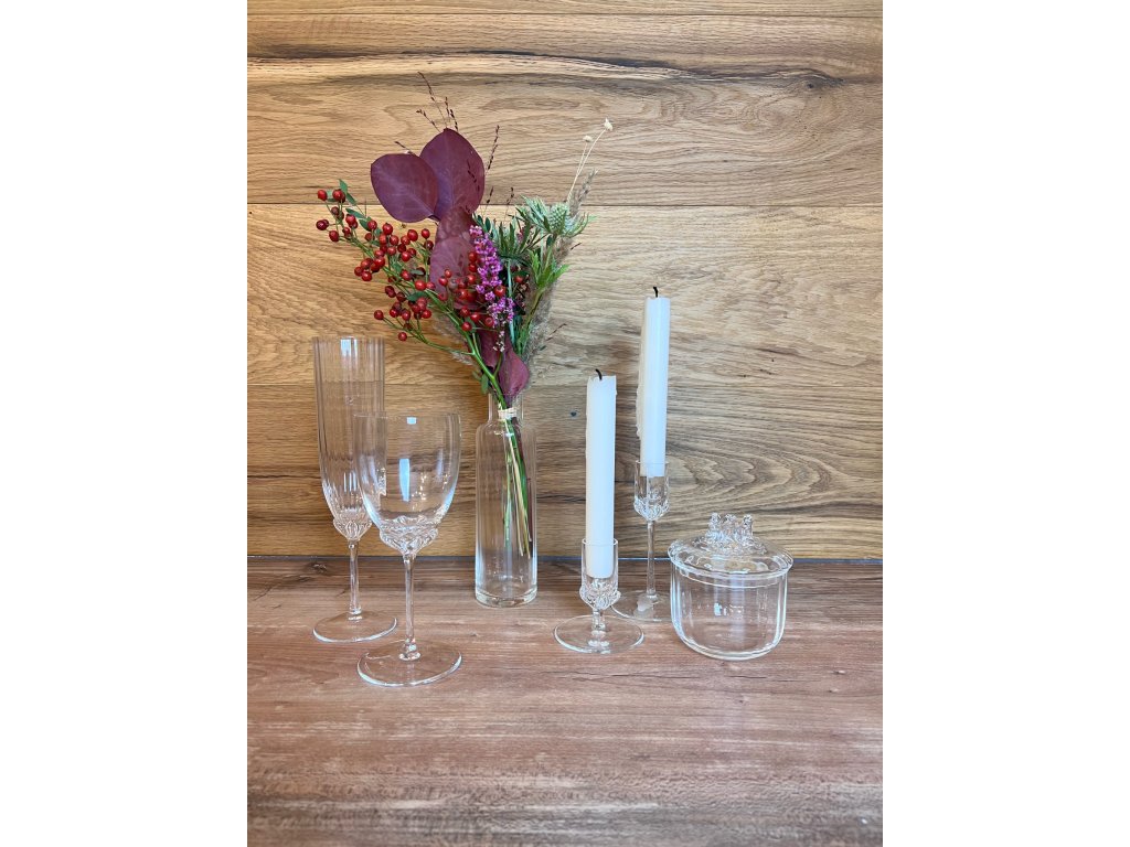 Dárkový set Sakura obsahuje vázičku, svícen 7cm, svícen 13cm, 2 bílé svíčky. Design Sakura je výjimečný svým hranováním z vnitřní strany, takzvaný optiš. Informace k...