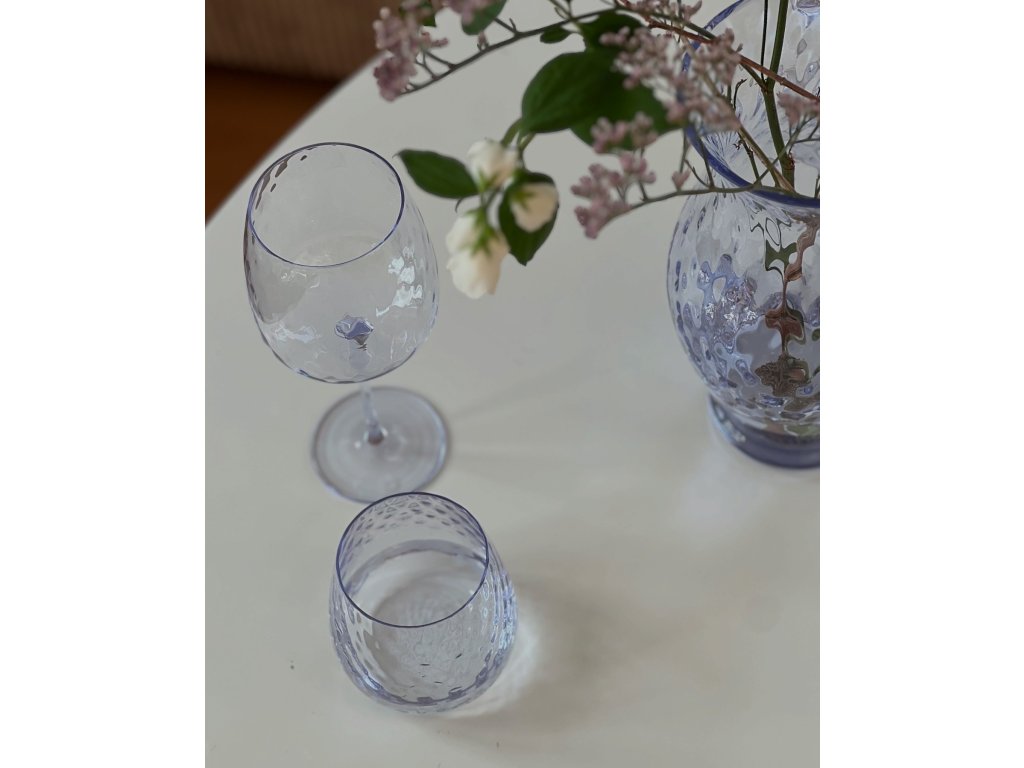 Dopřejte si krásu a vychutnejte si každý doušek díky unikátní sklence.. Ručně foukaná sklenice na vodu Cínie je vhodná nejen na vodu, ale také na různé druhy domácích limonád a nebo alkoholických drinků.V unikátním hvezdnicovitém vzoru se při dopadu slunečních paprsků rozehrává jedinečné kouzlo hry světla a stínu. Jedná se o ručně foukané sklo a každý kus je dokonalý originál.