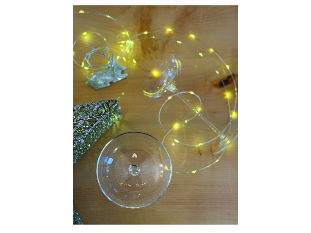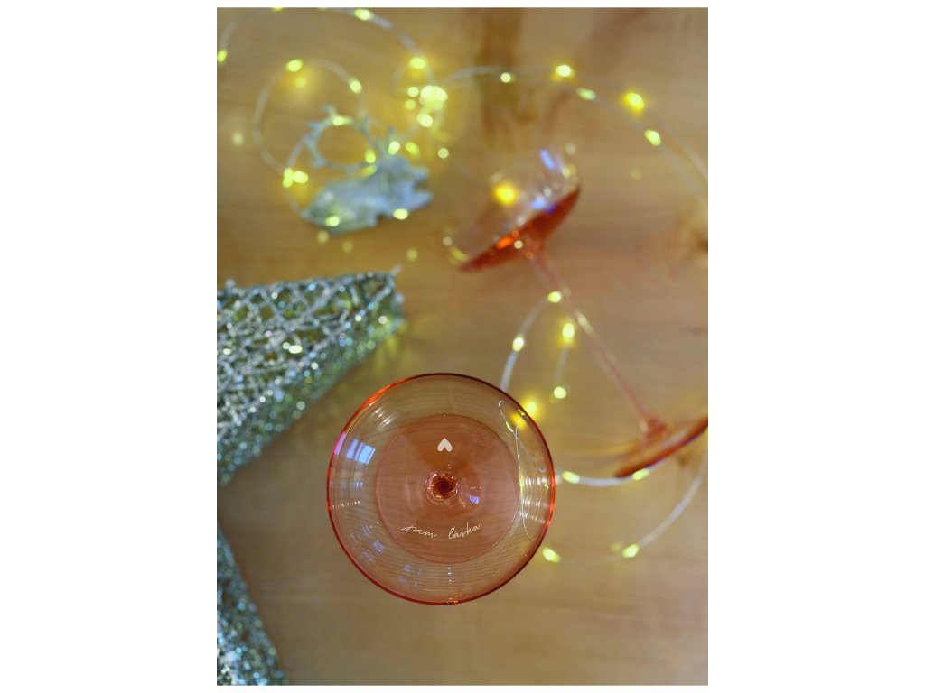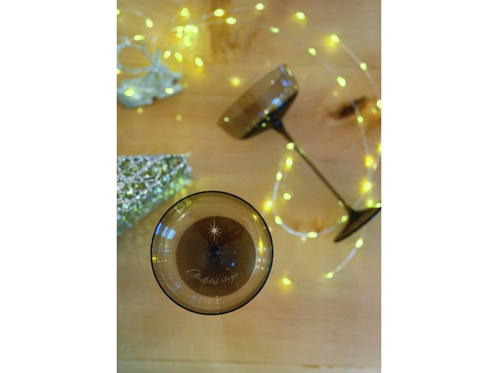 S pískovaným textem ve skeničce, která krásně zdobí každou ručně foukanou sklenici, a při nalití šampaňského, které krásně bublá, jsou tyto šampus misky sklenice nejen skvostem, ale i uměleckým dílem. Každý kousek je originál, ručně foukaný s láskou a pečlivostí.