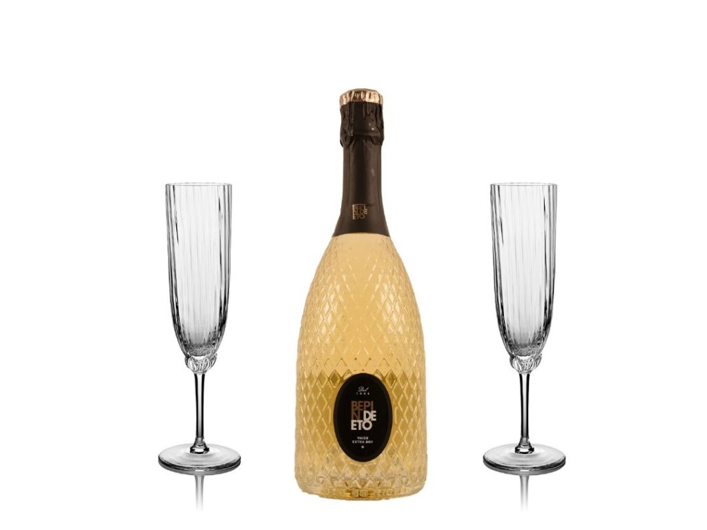 Sakura šampus flétna a italské prosecco Bepin De Eto VAISS EXTRA DRY