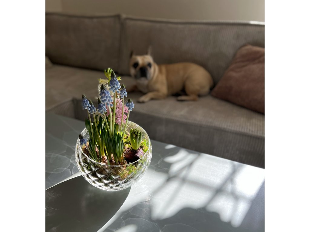 Skloglass ručně foukaná kulatá váza Dahlia je také k dispozici v provedení českého křišťálu, něžné růžové, mořském aquamarinu, jemné fialkové nebo atraktivní kouřové, krásné...