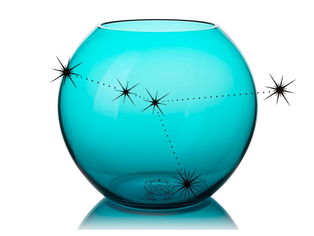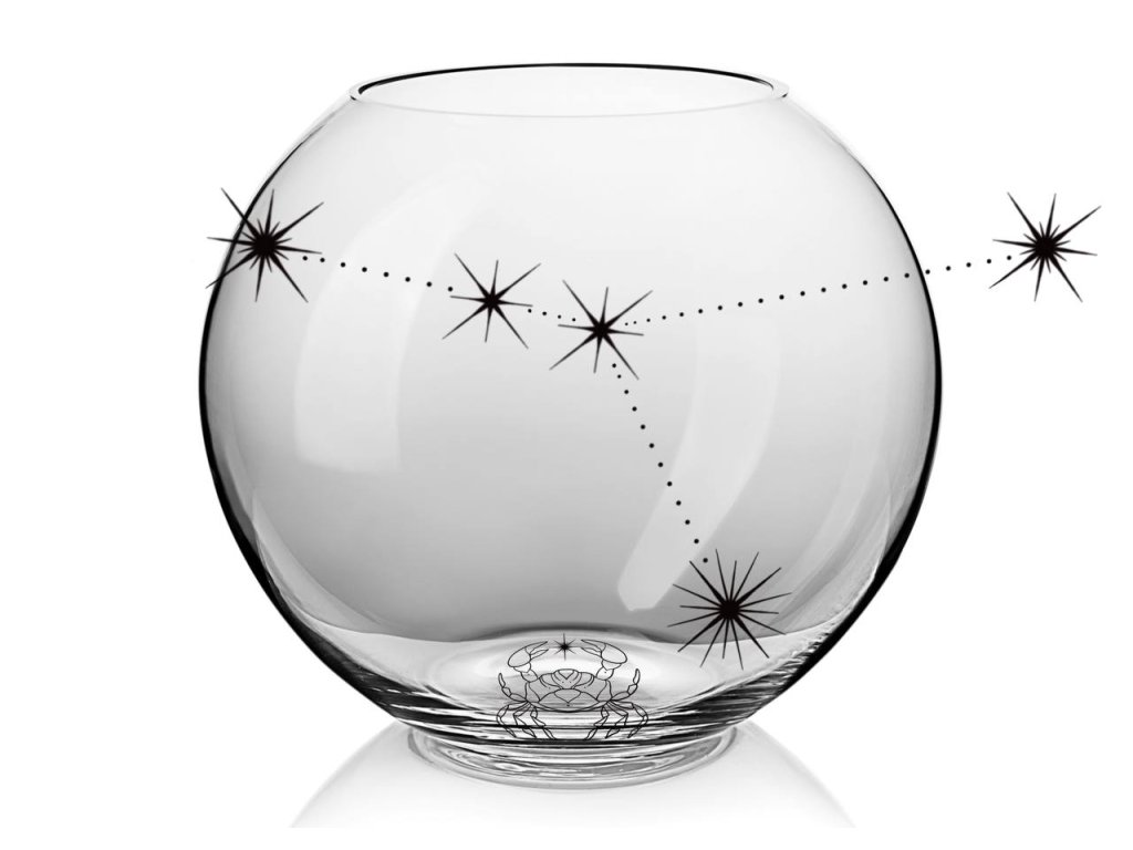 Ručně foukaná váza Koule s pískovaným horoskopem RAKA: