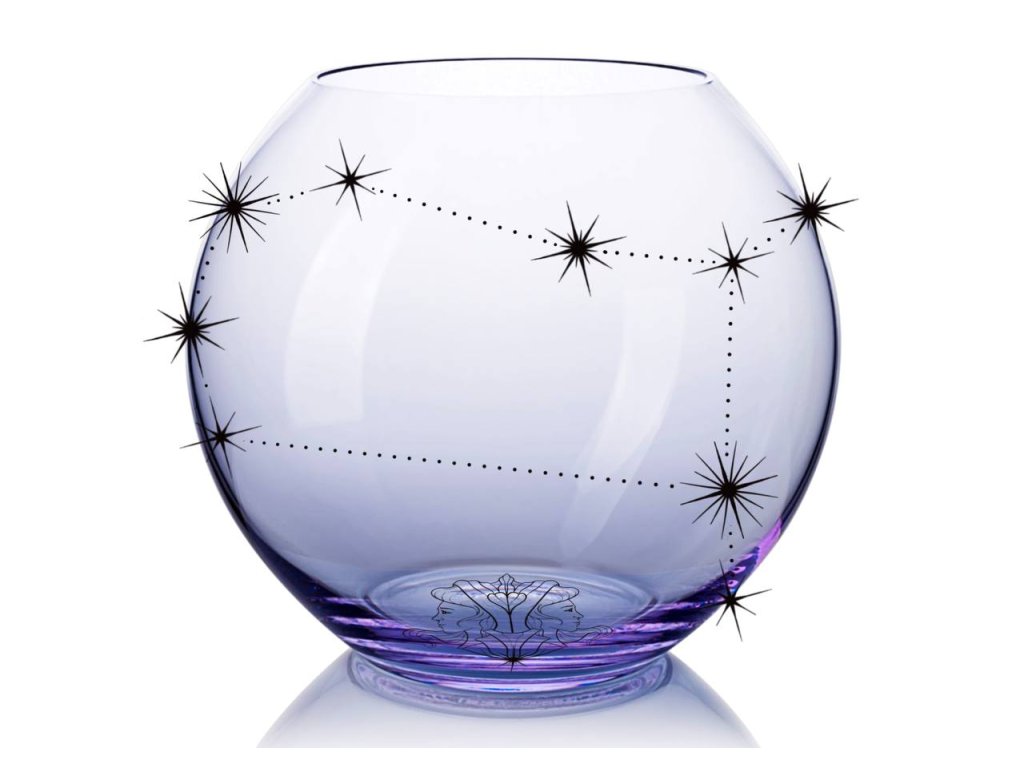 Ručně foukaná váza Koule s pískovaným horoskopem BLÍŽENCE: