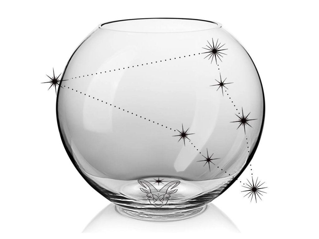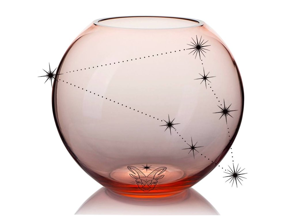 Právě na této váze se setkává řemeslná zručnost s astrologickou mystikou. Pískovaný motiv Kozoroha obklopuje vázu jako symbol vytrvalosti a ambicí, přinášející do vašeho interiéru klidnou a pevnou energii.