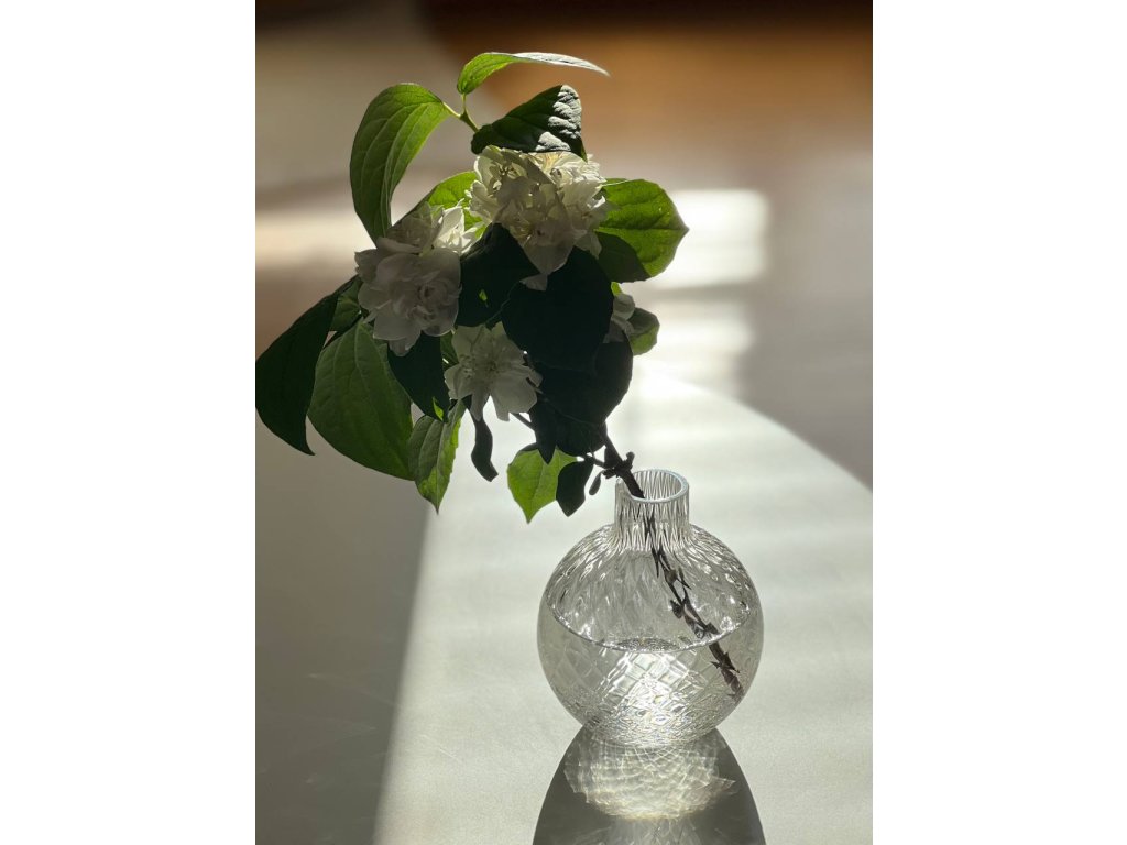 Mini vázička Dahlia je ručně foukaná z křišťálového skla a je ideální pro drobné květiny nebo jako elegantní dekorace do každé místnosti. Její jemný vzor a zaoblený tvar dodají vašemu interiéru nádech luxusu a originality. Díky svým kompaktním rozměrům je vhodná nejen na stůl či poličku, ale také jako dárek pro milovníky minimalistických doplňků.České ručně foukané sklo