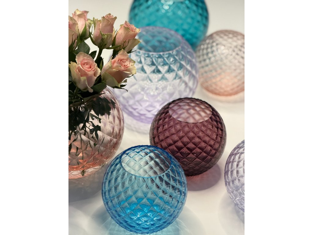 Díky možnosti výběru z několika barev skleněnou vázu Dahlia nádherně sladíte s vaším interiérem a vytvoříte díky ní komorní atmosféru v jakékoliv místnosti. Ručně foukaná kulatá váza Dahlia je k dostání v několika unikátních barvách. Něžně růžová barva svým odstínem napodobuje okvětní plátky růžových květů růží. Jemně fialová barva vám připomene křehkou krásu fialek či levandule. Atraktivní kouřová barva zaujme decentním tónem. Tradiční zpracování českého křišťálu zapadne do každého interiéru. Vyberte si svou vázu balenou v dárkové krabici po 1 kuse.