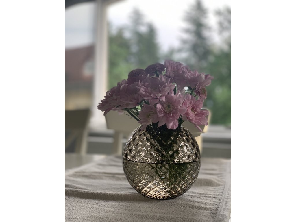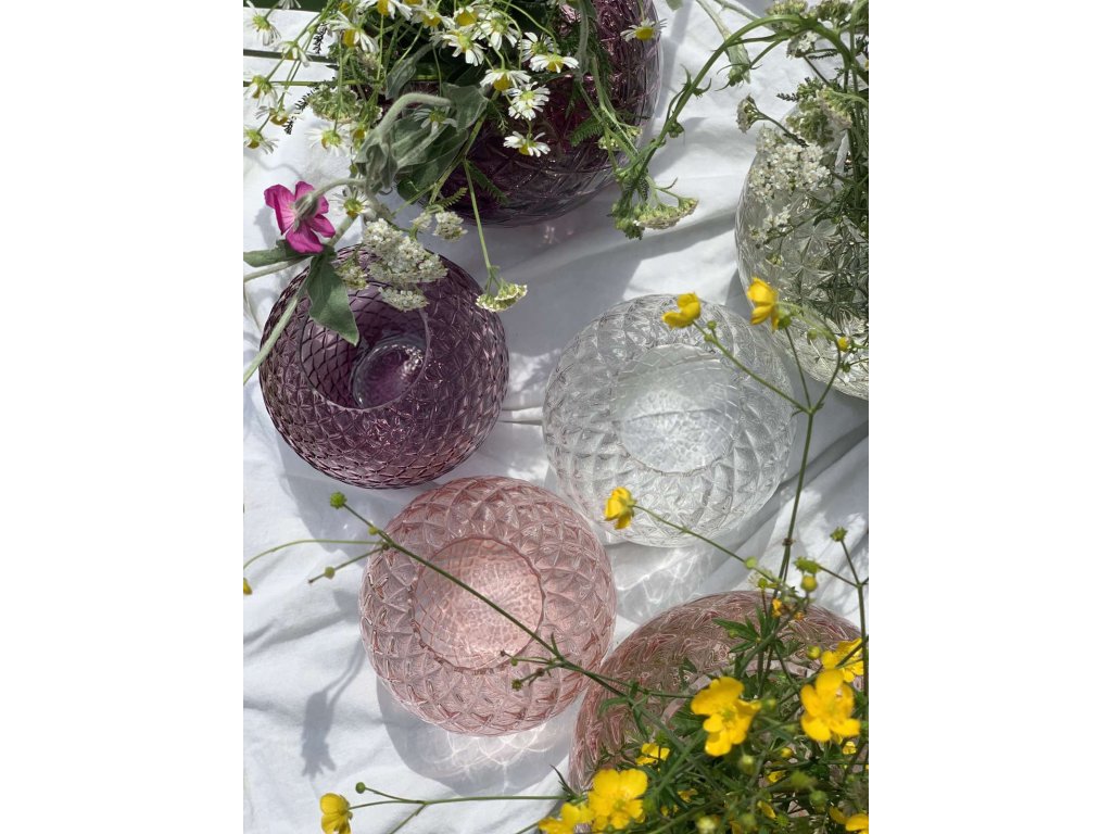 Ručně foukaná kulatá váza Dahlia se zajímavým hvězdnicovitým vzorem oživí každý interiér a ozdobí svým oblým tvarem slavnostní stůl, komodu i odkládací stolek. V unikátním vzoru se při dopadu slunečních paprsků rozehrává jedinečné kouzlo hry světla a stínu. Každý kus je výsledkem precizní ruční výroby.