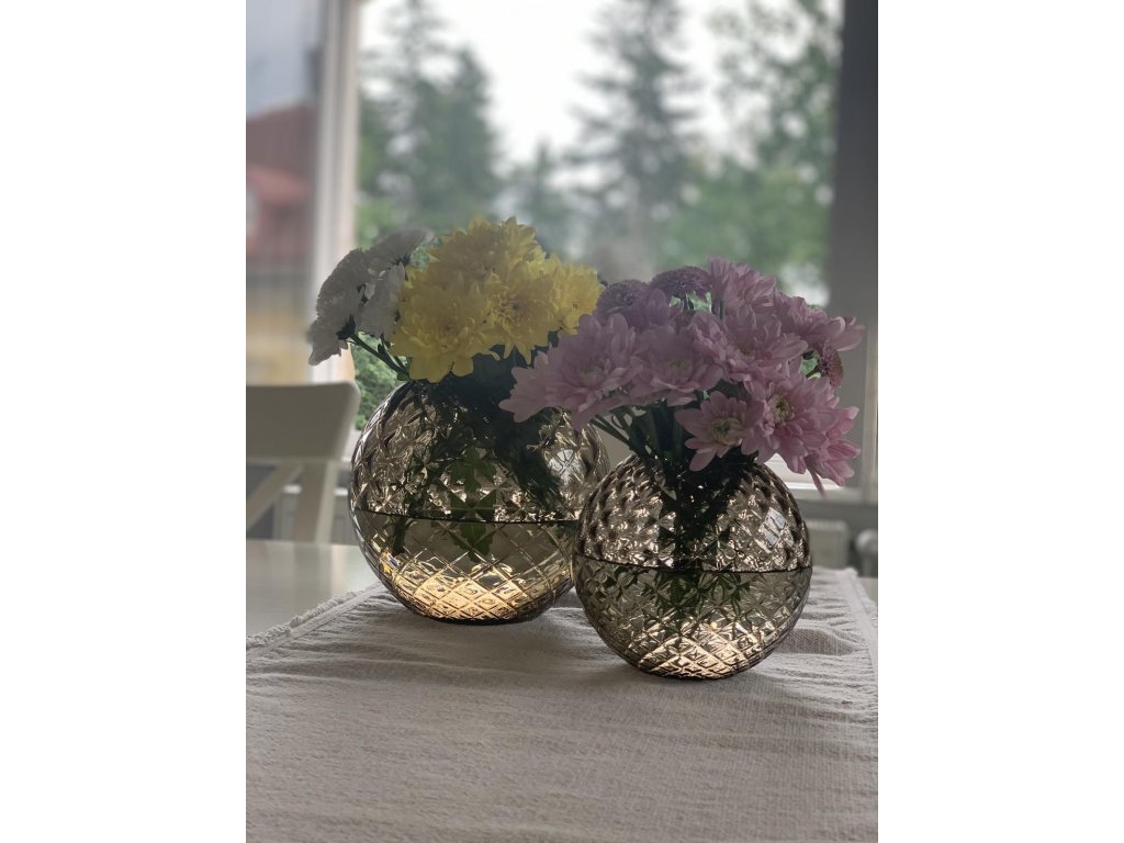 Díky možnosti výběru ze čtyř barev skleněnou vázu Dahlia nádherně sladíte s vaším interiérem a vytvoříte díky ní komorní atmosféru v jakékoliv místnosti. Ručně foukaná kulatá váza Dahlia je k dostání ve čtyřech unikátních barvách. Něžně růžová barva svým odstínem napodobuje okvětní plátky růžových květů růží. Jemně fialová barva vám připomene křehkou krásu fialek či levandule. Atraktivní kouřová barva zaujme decentním tónem. Tradiční zpracování českého křišťálu zapadne do každého interiéru. Vyberte si svou vázu balenou v dárkové krabici po 1 kuse.